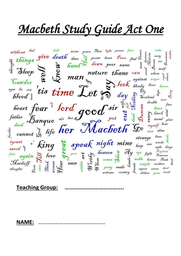 Show ImageMacbeth Printable Study Guide Worksheets Act One Teaching Resources