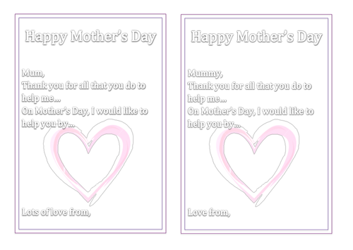 Mother S Day Card Inserts Teaching Resources